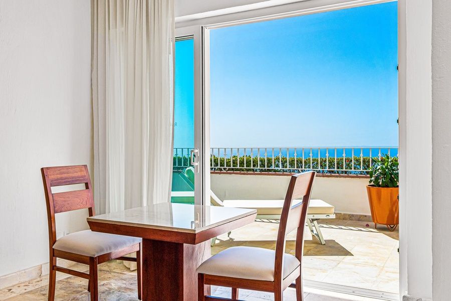 Welcome to your luxurious retreat in Puerto Vallarta, where comfort meets breathtaking views of Banderas Bay. This spacious three-bedroom suite is designed to accommodate up to eight guests, making it perfect for families or groups looking to enjoy a memorable getaway. The master bedroom features a king-size bed, while the second bedroom offers a cozy queen-size bed, and the third bedroom is equipped with two full-size beds, ensuring everyone has a comfortable place to rest. Step into the inviting living area, furnished with plush sofas and chairs, where you can unwind and enjoy the stunning panoramic views from the terrace. The fully equipped kitchen boasts a breakfast bar and pantry, making meal preparation a breeze. Gather around the dining table that seats eight for delightful meals together, or take your dining experience outdoors on the terrace. This suite includes three full bathrooms, providing ample space and privacy for all guests. With amenities such as wireless internet, cable TV, air conditioning, and a washer/dryer, you'll have everything you need for a relaxing stay. Enjoy the resort-style amenities, including a heated pool, hot tub, and fitness room, all while being just steps away from the ocean. Whether you're here for a family vacation, a wedding, or a special event, this suite offers the perfect blend of luxury and convenience. Book your stay today and experience the beauty of Puerto Vallarta!