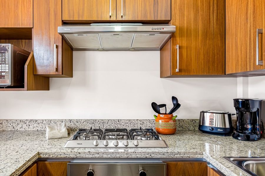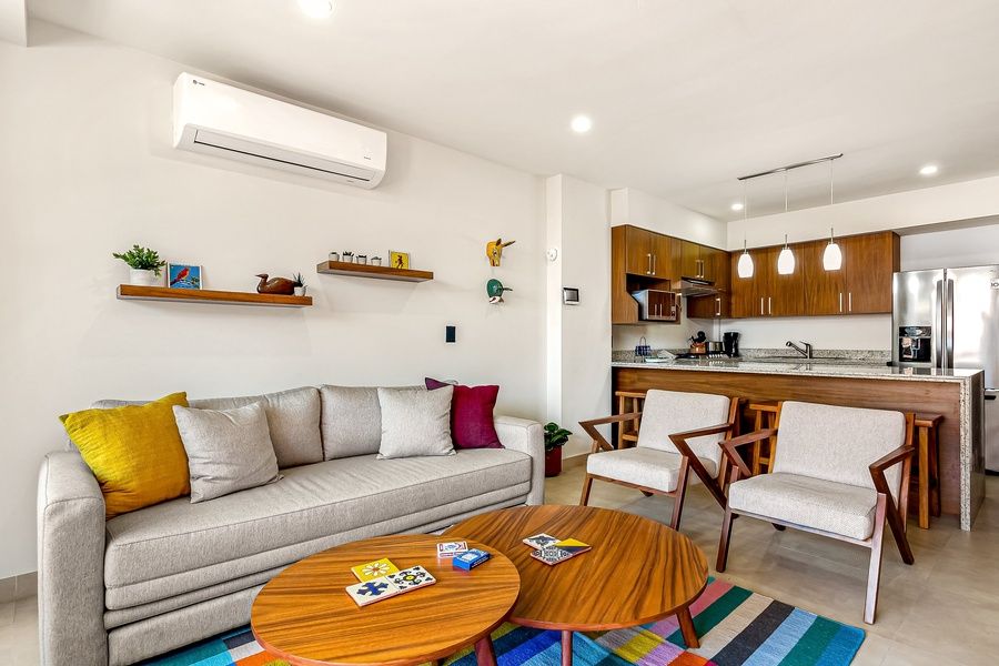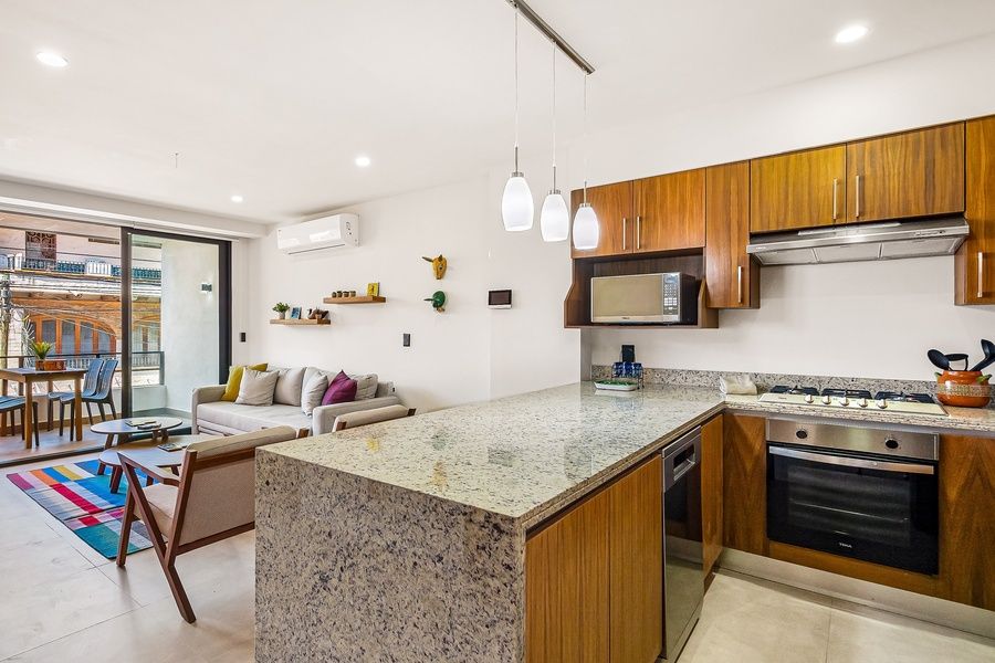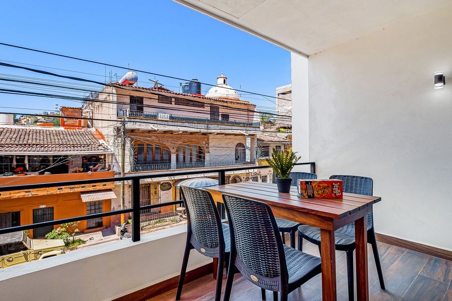 Come and experience a tranquil and unique getaway at this second-floor condo in Puerto Vallarta's Romantic Zone, which is an absolute must-visit for anyone! You will find that its quaint streets are filled with great dining options, wonderful shops, cafés, and convenience stores. The mile-long Malecon Boardwalk is within a short walking distance and is the perfect viewpoint to admire the beautiful views of Banderas Bay and Manuel Lepe's Fish Vendors mural. Los Muertos beach is within a mile for some sunbathing. When you book this fantastic condo, you also get access to the resort's community amenities which include a sparkling heated rooftop pool, a rooftop dining area with several tables and chairs, gas grills, and an elevator. This well-appointed home away from home has everything you need for a tranquil and unforgettable stay. Start your day with a delicious breakfast on your balcony followed by a thrilling stroll downtown and some souvenir shopping. Then, come back to the resort to cool down in the refreshing waters of the rooftop pool. When it's time to wind down for the day, a cozy living area awaits with a large TV, air conditioning, and inviting furniture. Prepare a delicious dinner using local ingredients and surprise your family and friends with a Mexican treat!