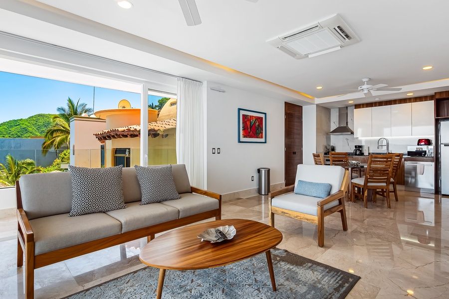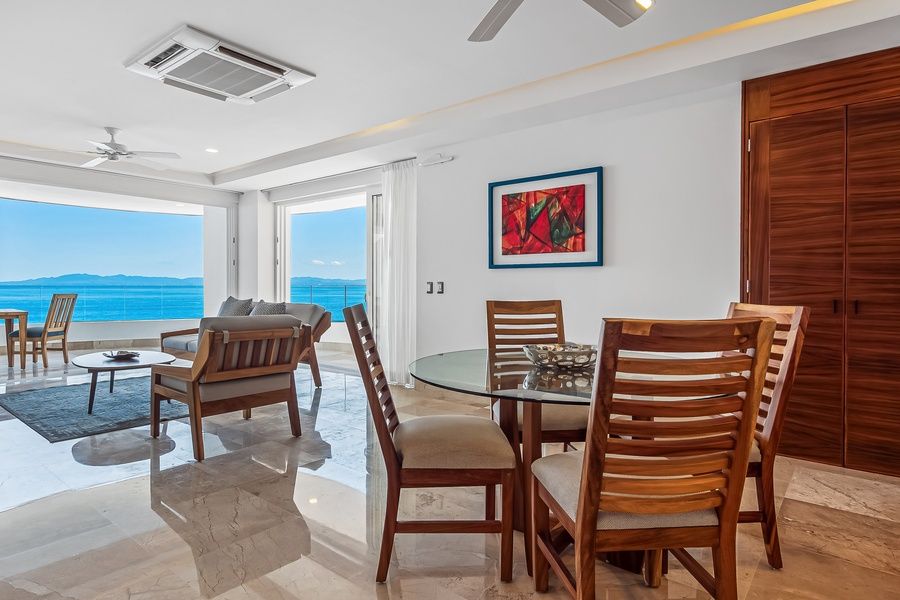 Perched in the heart of Puerto Vallarta, this stunning oceanfront apartment offers a luxurious retreat with breathtaking views of the ocean. The single-level home boasts step-free access throughout, ensuring ease and convenience for all guests. Step inside to find a beautifully appointed living space with modern amenities, including a balcony where you can soak in the ocean breeze and enjoy the mesmerizing water views. The apartment features a well-equipped kitchen with top-of-the-line appliances, perfect for whipping up delicious meals. Relax in the comfortable king bed after a day of exploring the vibrant city, or unwind in the rooftop infinity pool overlooking the sparkling waters. With central AC, Netflix streaming, and a gym/fitness room on-site, every comfort is at your fingertips. Whether you're lounging by the pool, strolling along the waterfront, or simply enjoying the stunning sunsets from your balcony, this oceanfront apartment in Puerto Vallarta is the perfect escape for a memorable vacation.