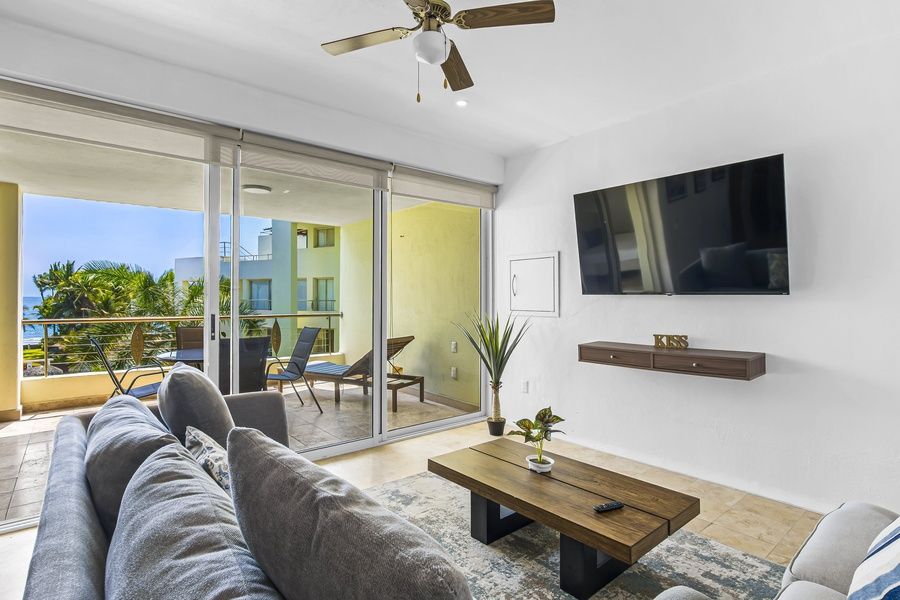 Step out onto your private balcony to enjoy the gentle ocean breeze and partial ocean views—perfect for greeting the morning with a coffee or unwinding at sunset with a glass of wine. While the ocean view is only visible from the balcony, the condo's bright and welcoming interior brings the beachy vibes indoors with comfort and ease.