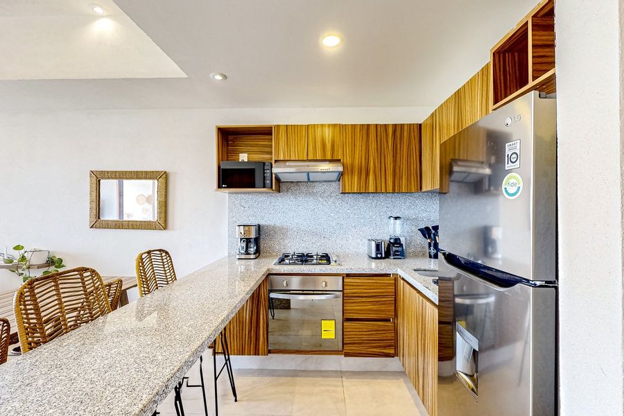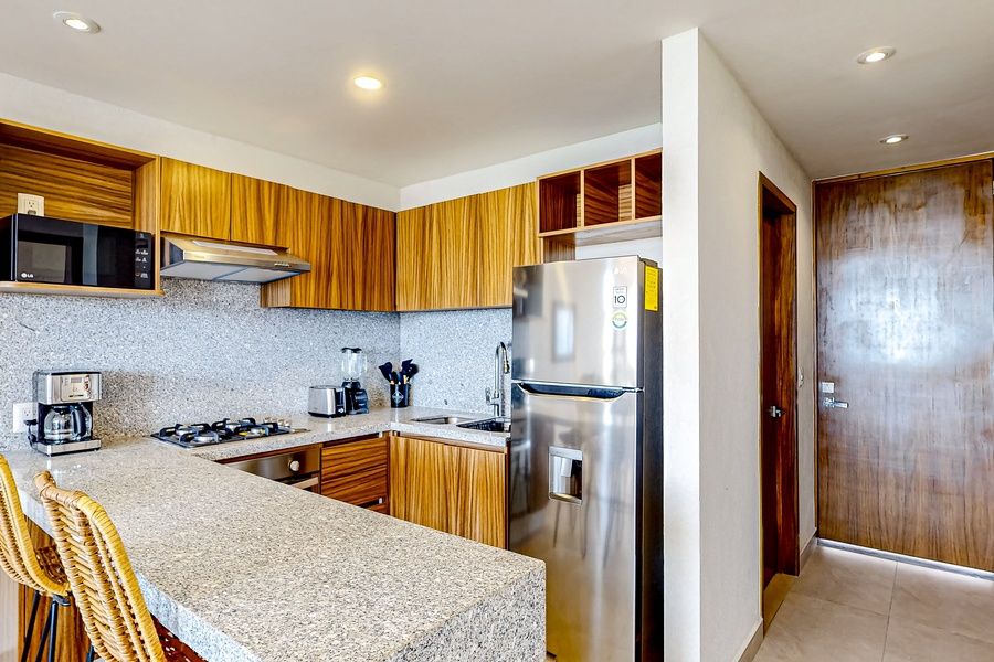 Stop dreaming of your next coastal getaway and make it a reality with this beautiful Bucerias condo. Showcasing amazing ocean views, this modern gem comes complete with some incredible on-site amenities, including a secure parking garage, a rooftop infinity pool, and a bar/lounge deck. You'll be just a short stroll from Playa Bucerias, along with some great food and drink options. Flamingos Golf Club is only three miles away for golfers in the group looking for a nearby tee time.