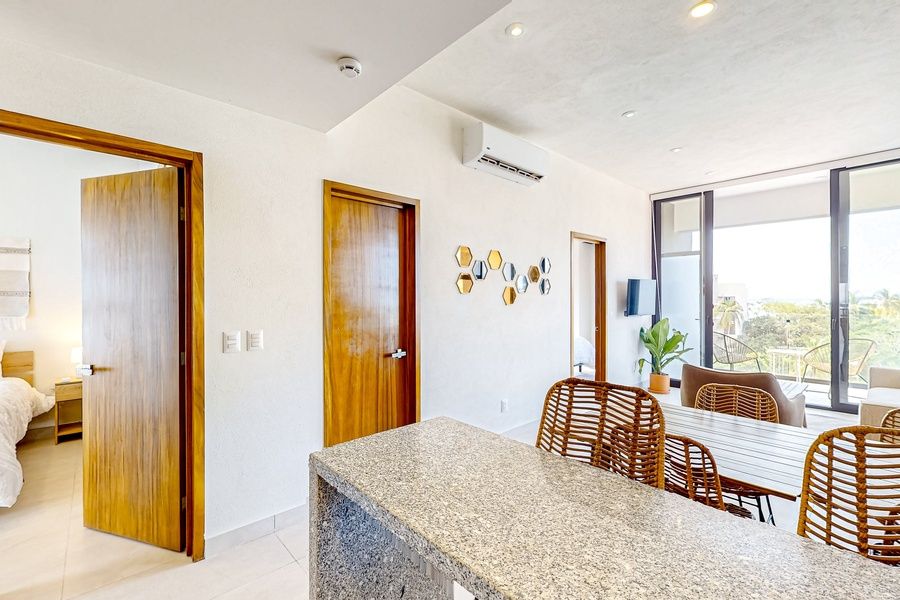The condo itself features stylish design and decor, plus all the modern home essentials you need for carefree vacation living. The private ocean-view balcony is the perfect place to start or end each day over coffee and cocktails. The full kitchen is equipped to easily handle home cooking if you don't feel like eating out. There's a smart TV in the living room. Both bedrooms feature private en suite bathroom access and a mounted mini-split air-conditioner.