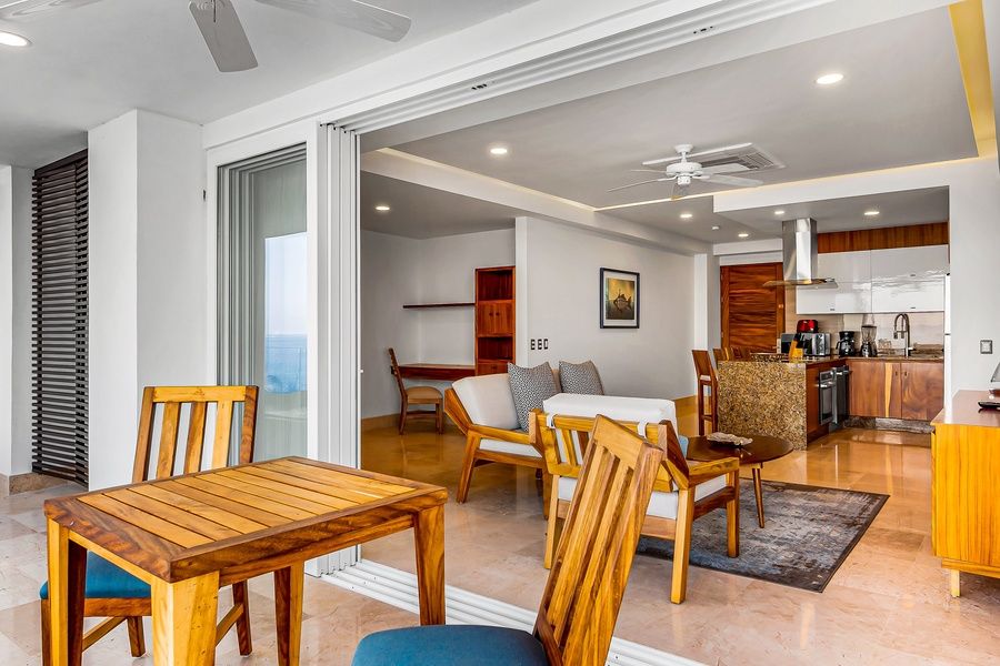 Relax and make yourself at home by resting on the plush furniture, watching movies on the large TV, or hosting great conversations with your loved ones. Create culinary charms in the full kitchen, equipped with stainless steel appliances and a breakfast bar. Romantic vibes await in the bedroom, with spectacular ocean views, a private entrance to the balcony, another TV, and a luxurious en suite bathroom. Make memories that'll last a lifetime when you spend your vacation here in breathtaking Mexico.