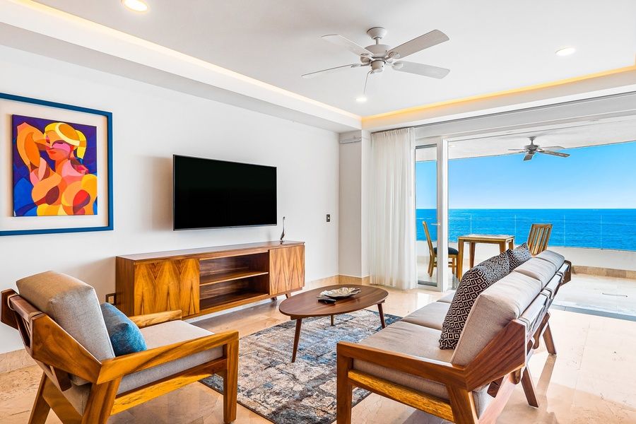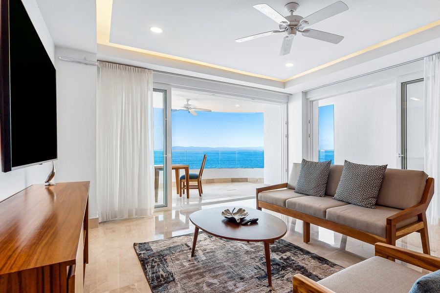 Luxury coastal living is yours at this incredible oceanfront condo. Boasting endless ocean views from a large balcony, this coastal gem includes on-site access to an incredible suite of amenities including a waterfront pool, pool spa, and outdoor dining areas. Playa Mismaloya is just a few minutes down the road and you'll be a short drive from shopping, bars, and dining in PV proper. The stylish modern interior showcases an open layout with abundant natural light and all the comforts of home. Use the full kitchen to prepare meals, then sit down for meals indoors or out on the balcony. In the evenings, unwind with shows and movies on the smart TV. Ceiling-mounted air-conditioners, free WiFi, and a private washer/dryer round out the home essentials. THINGS TO KNOW Streaming services available with guests' own account(s).