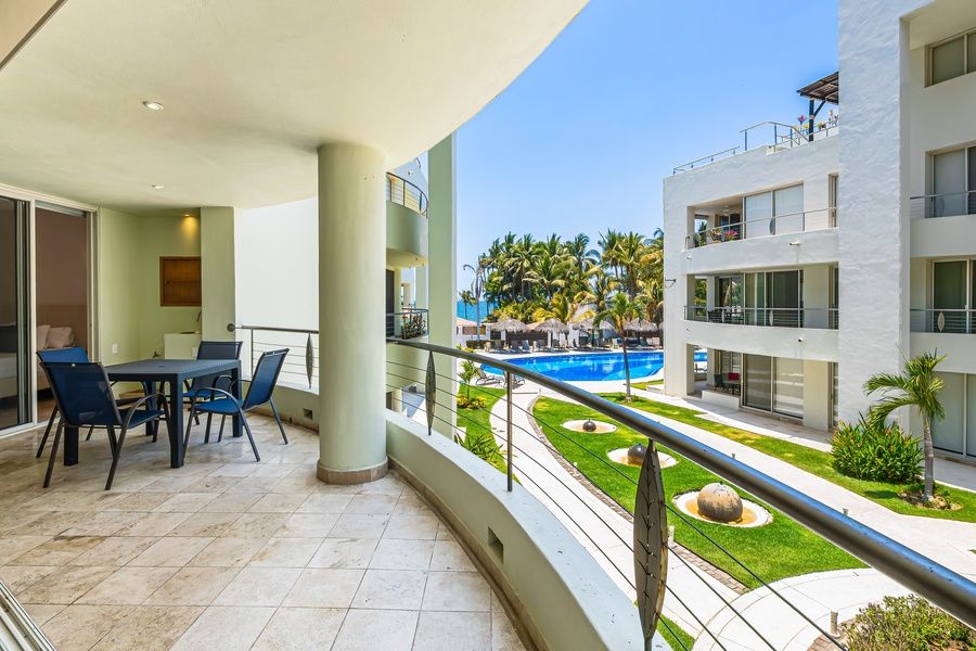 Maximum occupancy: 6 guests. All ages count as guests, including babies. Welcome to your perfect getaway in the heart of Nuevo Vallarta! This bright and breezy condo offers the ideal blend of comfort, convenience, and charm—featuring partial ocean views from the private balcony, perfect for sipping morning coffee or enjoying sunset cocktails while soaking in glimpses of the Pacific coastline. Located just a short walk from the beach, this tranquil retreat places you steps away from sun-soaked afternoons on the sand and refreshing ocean breezes. Paseo de los Cocoteros, the area's popular palm-lined avenue, is just outside your door—ideal for scenic morning jogs, bike rides, or leisurely evening strolls among lush resort surroundings. Inside the condo, you'll find a thoughtfully designed, open-concept living space with central air conditioning, a Smart TV for Netflix streaming (just bring your login), and a well-equipped kitchen including a fridge, stove, and microwave for easy meal prep or quick snacks between adventures. Whether you're vacationing as a couple, with friends, or as a family, you'll love the outdoor pool, perfect for relaxing year-round, plus a children's pool that's ideal for little ones to splash and play safely. You'll be just minutes from fantastic local restaurants, boutique shops, and day-trip destinations. Take a 10-minute drive north to the charming beach town of Bucerías, known for its artistic vibe and seafood fare, or go south to explore downtown Puerto Vallarta, about 30 minutes away, with its lively waterfront, dining, and nightlife. Looking for adventure? The surrounding area offers horseback riding, kayaking, paddleboarding, golfing, boating, and seasonal whale watching. Whether you're here to unwind poolside, explore the coast, or enjoy unforgettable family memories, this welcoming beachside condo makes the perfect home base for your Nuevo Vallarta escape. Book your stay now and experience the beauty, adventure, and relaxation of the Riviera Nayarit! Things to Know All guests shall abide by the good neighbor policy and shall not engage in illegal activity. Quiet hours are from 10 p.m. to 8 a.m. No smoking is permitted anywhere on the premises. This vacation rental has a maximum capacity of six guests. All ages count as guests including babies.