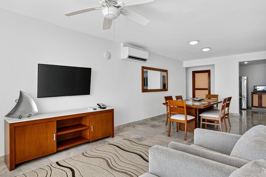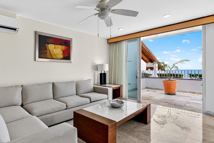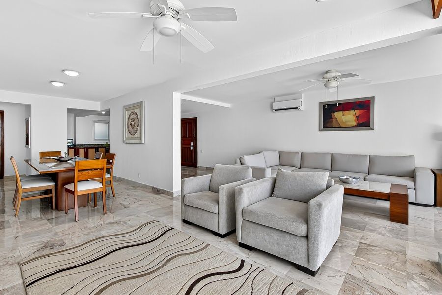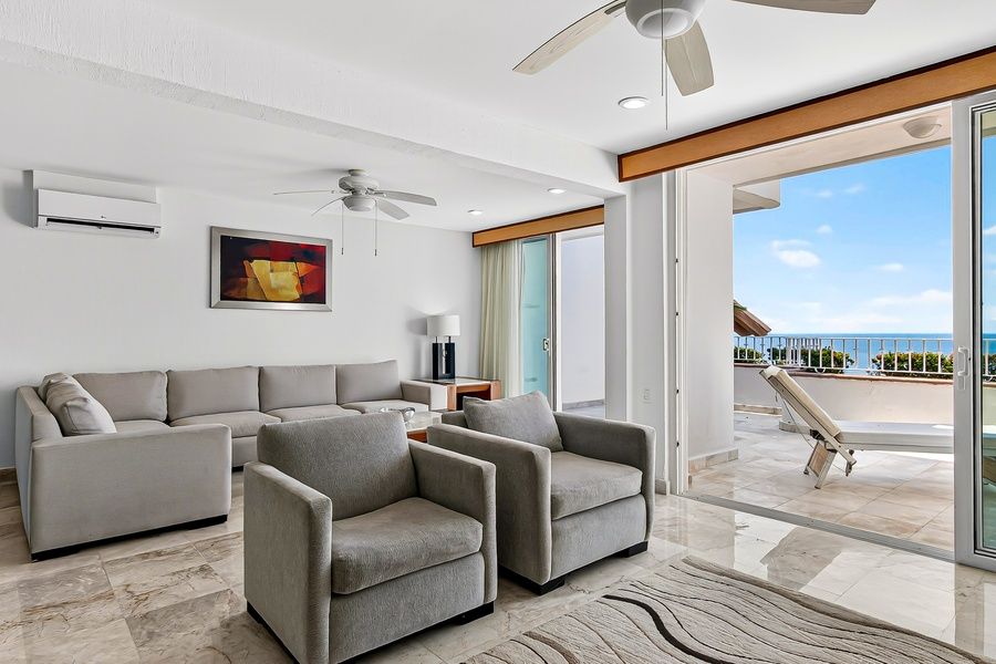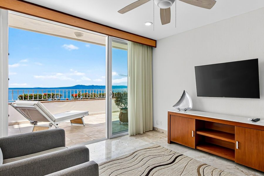 Welcome to your luxurious retreat in the heart of Puerto Vallarta! This stunning three-bedroom suite is designed for comfort and relaxation, accommodating up to eight guests with ease. The master bedroom features a plush king-size bed, while the second bedroom offers a cozy queen-size bed, and the third is perfect for families with two full-size beds. Spacious living areas are tastefully furnished with a comfortable sofa and chairs, creating an inviting atmosphere for gatherings. Step out onto the terrace to soak in the breathtaking panoramic views of Banderas Bay, a perfect backdrop for your morning coffee or evening cocktails. The fully equipped kitchen boasts a breakfast bar and pantry, making meal preparation a breeze. Enjoy family meals in the dining area, which comfortably seats eight, or take advantage of the three full bathrooms for added convenience and privacy. This suite is packed with amenities to enhance your stay, including wireless internet access, cable TV, and air conditioning to keep you cool during warm days. Enjoy the outdoor infinity pool with stunning views, or take a short stroll to the nearby ocean for a day of fishing or relaxation. With easy access to downtown and a variety of attractions, this suite is the ideal home base for your Puerto Vallarta adventure. Book your stay today and experience the perfect blend of comfort and luxury! Things to Know: Smoking is prohibited on the property. Failure to comply with this rule will result in a fine payable on site.