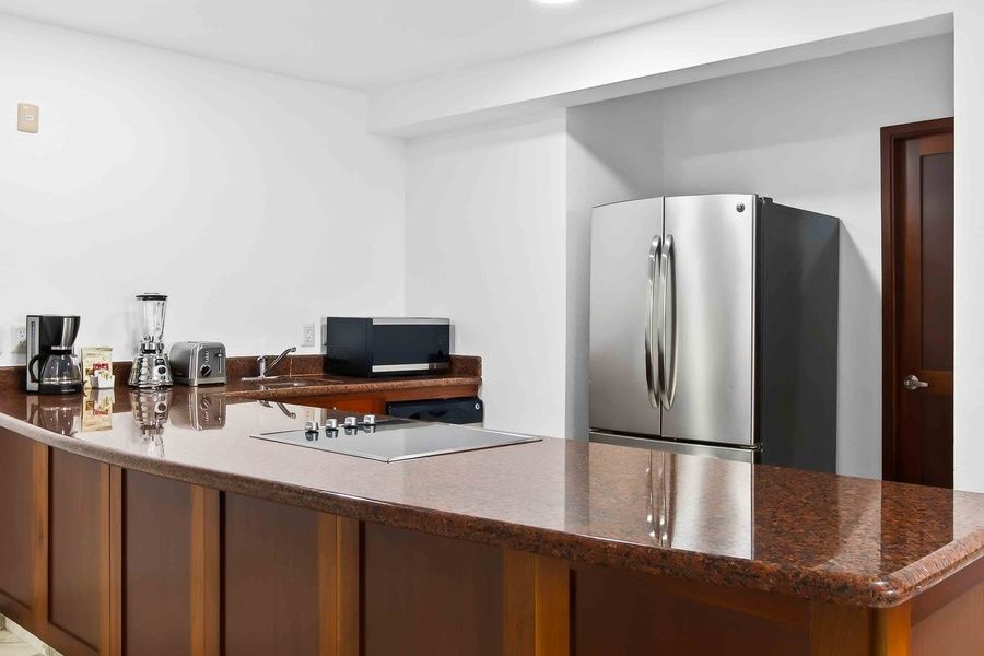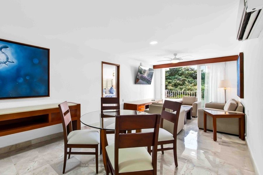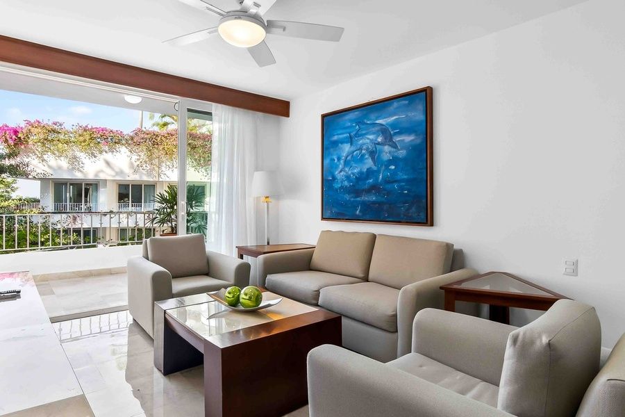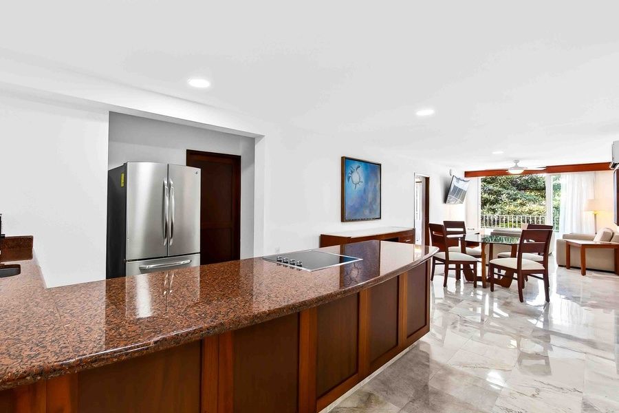 Step out onto your expansive private terrace and take in the sweeping views, the perfect setting for morning coffee or a relaxing sunset cocktail. Inside, the open-concept layout invites you to gather around the dining table that seats eight comfortably, ideal for enjoying meals prepared in the fully equipped kitchen-complete with a breakfast bar and pantry for added convenience. Thoughtfully designed with comfort and ease in mind, the suite features two full bathrooms and a variety of modern amenities, including high-speed wireless internet, cable TV, and air conditioning. Families and groups will appreciate the step-free access, well-lit entry path, and spacious layout that caters to everyone's needs. When it's time to unwind, take a dip in the outdoor pool, lounge on the rooftop terrace with an infinity pool offering stunning surroundings, or recharge in the on-site fitness center. Nestled in the upscale Conchas Chinas neighborhood-often called the 'Beverly Hills of Puerto Vallarta'-you'll be just minutes from the lively heart of downtown and the charming Romantic Zone, known for its vibrant restaurants, boutiques, and beachside bars. You're steps away from the ocean and surrounded by the perfect mix of tranquility and urban excitement. Whether you're planning a family getaway or a retreat with friends, this luxurious suite is your ideal home base for making the most of your Puerto Vallarta experience. Book your stay today and indulge in tropical living at its finest! Things to Know: Smoking is prohibited on the property. Failure to comply with this rule will result in a fine payable on site.