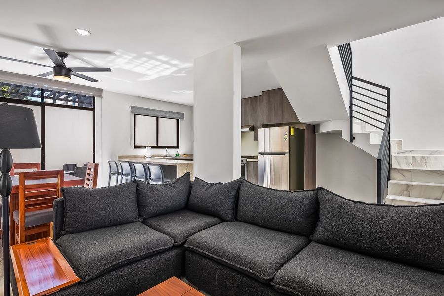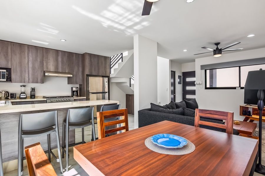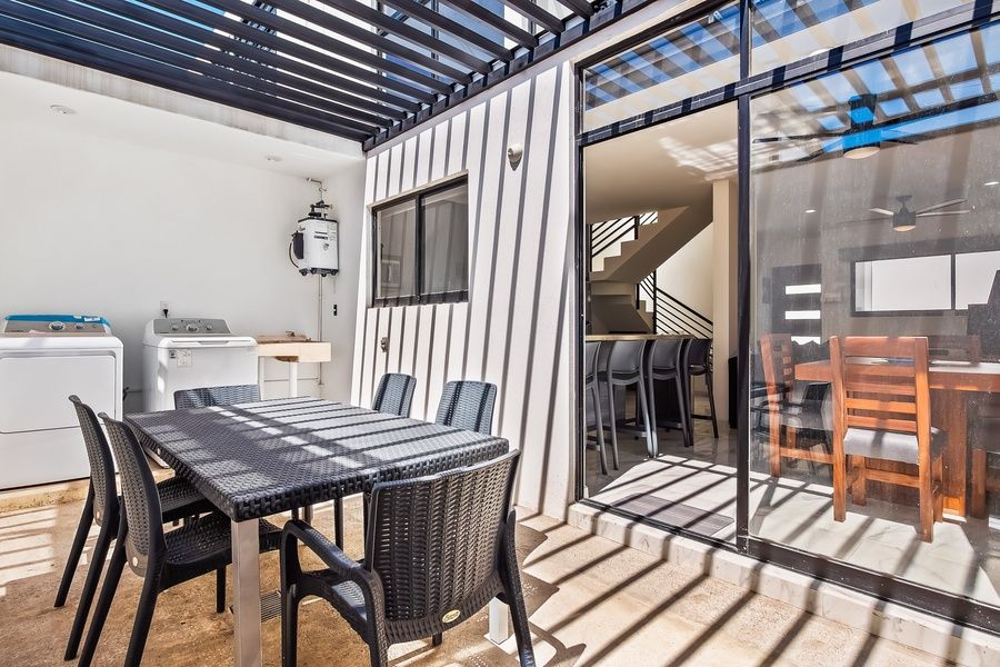 This beautiful two-story home enjoys a pristine open floor plan with tiled floors throughout. Spend your evening in the community's outdoor pool and then come back home to unwind and spread out comfortably in the living area, featuring an inviting sectional and a smart TV with streaming services. Don't forget to get your hands on some locally-sourced groceries and whip up a delectable Mexican meal in the fully equipped kitchen, equipped with high-quality stainless steel appliances. You can enjoy your scrumptious feast either at the dining table or outside in the private patio's outdoor dining area.