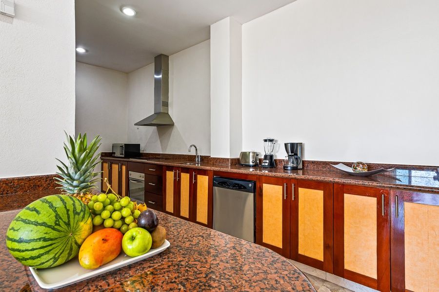 Welcome to your luxurious retreat in Puerto Vallarta, where stunning ocean views and modern comforts await you. This exquisite suite features two beautifully appointed bedrooms, ensuring privacy and relaxation for all guests. The master bedroom boasts a king-size bed and a 32-inch LCD screen, while the second bedroom is furnished with two double beds and another 32-inch LCD screen. Both bedrooms come with full bathrooms and open onto private terraces, allowing you to soak in the breathtaking views of the bay.