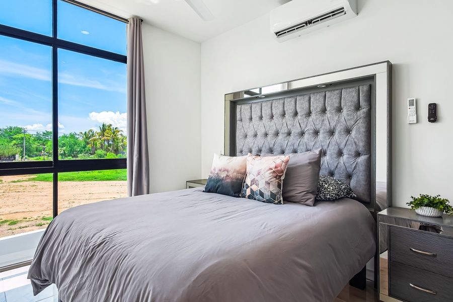 Adorned with fun pops of color, high-quality bedding, and private TVs - the bedrooms are equally impressive. Additional perks include partial air-conditioning, sizable bathrooms, and a scenic balcony.