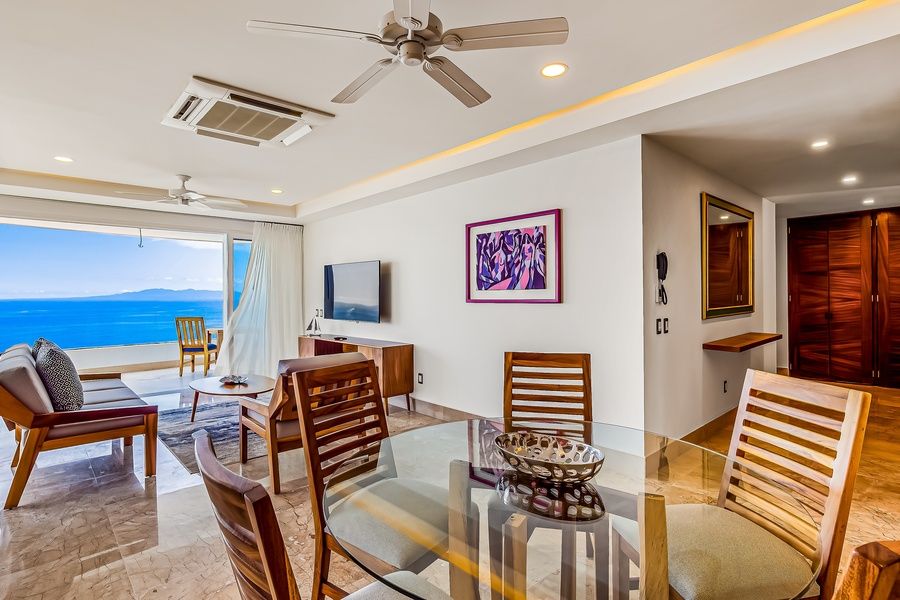 Perched on the stunning oceanfront of Puerto Vallarta, this luxurious apartment offers breathtaking views of the sparkling waters and is the perfect retreat for your next vacation. With step-free access throughout, including a well-lit and flat path to the front door, this single-level home ensures ease and comfort for all guests.