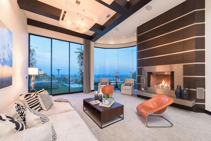 Ultra-private and expansive, the home embodies quintessential LA living—seamlessly blending wellness, luxury, and sophistication. A tranquil courtyard with an olive tree and serene waterfall sets the tone, framed by breathtaking year-round views.