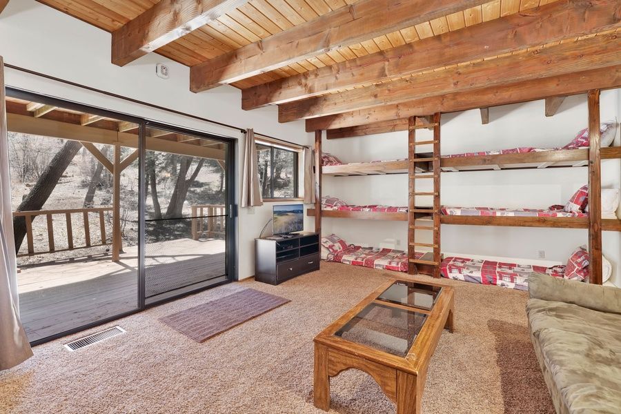 Bedroom 6: Two Triple Bunks, (6 Twins) TV w/ Cable, Deck Access - Lower Downstairs Level