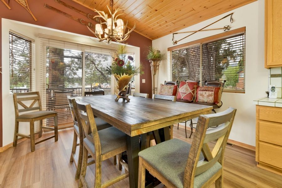 The chef of your group will love preparing home cooked meals and holiday feasts here together as you stay connected with the group and enjoy the open floor plan, the gorgeous dining table and patio deck picnic area offer you plenty of choices for comfortable sitting for your group meals together. The equipped kitchen has everything you need for meals from the oak cabinets stocked with cookware and utensils to stainless appliances including a dishwasher for a breezy cleanup. Enjoy easy and convenient access to your three bedrooms and both bathrooms, each is made up for your group with warm linens, blankets, pillows, and fresh shower towels when you arrive for your visit plus a separate laundry room offers a washer and dryer for those wet snow clothes or extended visits to the mountains. The property sits on a corner lot and offers a great sun deck for you to relax and is only 2 miles to Snow Summit Resort and the grocery stores. Your group will love this chalet and will all understand why you "Can't Bear to Leave" on your departure morning.