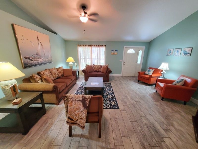 The living room is situated with comfortable sofas, a 55” HDTV and is nicely decorated. Our home is equipped with WIFI so bring all the electronic devices to stay in touch with family and friends while you have the best vacation ever.