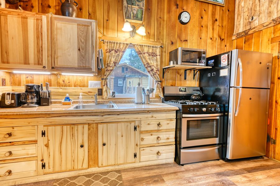 The Daniel Boone Cabin is referenced by George as one of the most cherished of Pine Haven Cabins. Boldly sitting adjacent to Fall River, you can access the waters edge in just 30 seconds or enjoy the sights and sounds of the river from your perfectly positioned private deck. Say 'hi' to the chorus of squirrels and birds greeting you as you soak up your Rocky Mountain Experience. Fishing anyone?