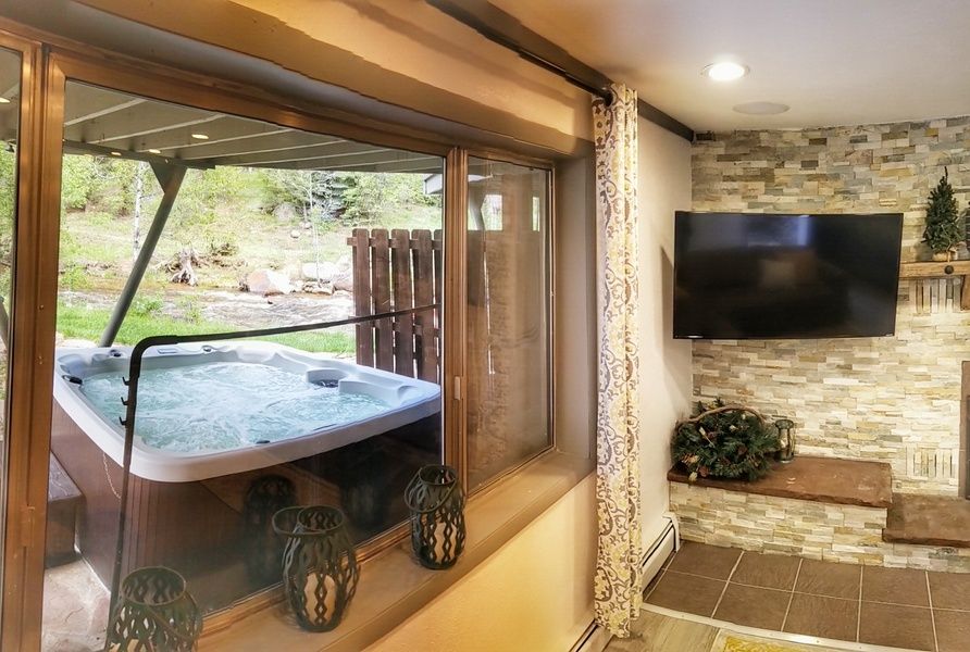 Every Cabin has private hot tubs. The Mountain Lodge and River Lodge have access to the community hot tub on Fall River.