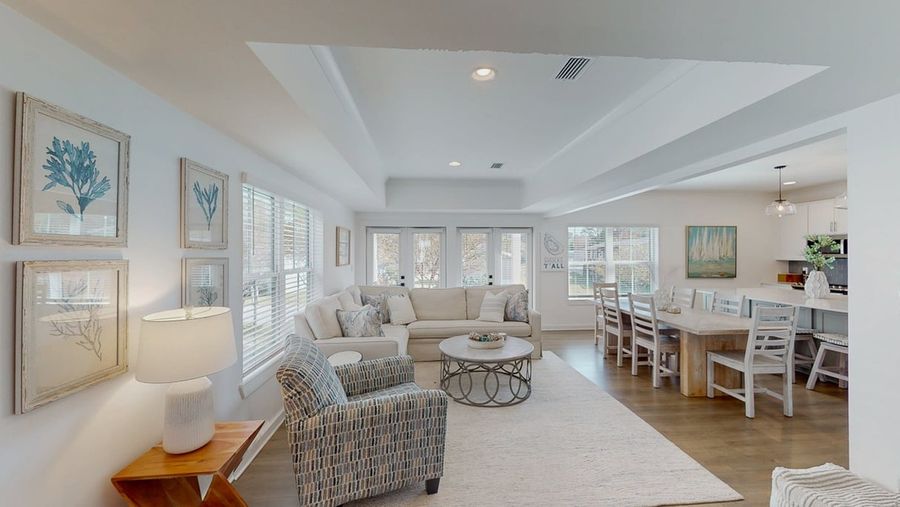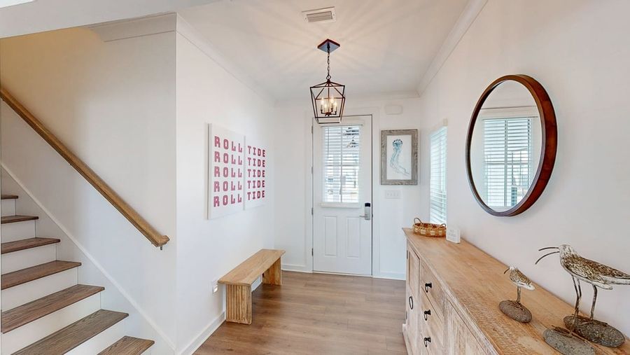 Experience the ideal retreat for your next beach vacation, a pristine, newly constructed 3-bedroom, 2.5-bathroom home meticulously designed with your family in mind. Enter a spacious, open floor plan on the first level, where you can gather with loved ones in the expansive living room. Equipped with a large Smart TV for streaming your favorite movies and TV shows, it also features a sleeper sofa for additional sleeping arrangements. Alternatively, step outside onto the patio to relish breathtaking sunsets with your preferred beverage in hand.