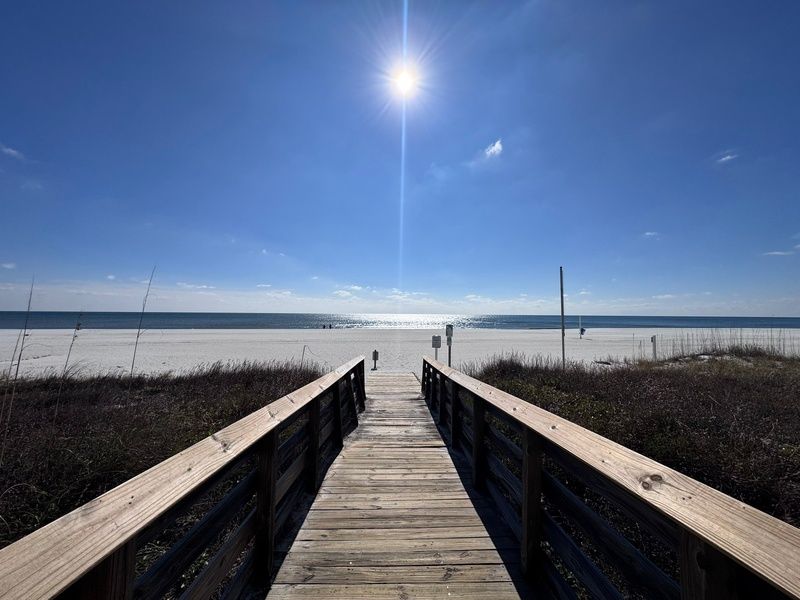 "Indulge in the matchless views of an East corner unit! Revel in unobstructed sights that stretch across miles of unspoiled State Park dunes from the balcony, bedroom, and living room windows, providing breathtaking vistas of the Gulf waters below and vast stretches of beach to the East. The North side offers stunning views of lush Gulf Shores State Park. You'll relish the convenience of two pools and proximity to fine dining, golf, water parks, an amusement park, mini-golf, hiking trails in the state park, fishing pier, shopping, and more. Covered parking adds to the ease of your stay.