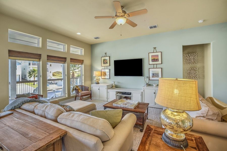 **A signed Property Management Rental Agreement Contract is mandatory upon booking. Also required is a copy of driver's license to receive check in instructions. Contracting guests of Port A Beach House Company must be 25 years of age or older.** Welcome to Gone Coastal! This is a custom-built ocean front home that features two large decks with OCEAN VIEWS! This beautifully decorated home has a large open kitchen, living area, 4 bedrooms, 4 ½ baths, and a second living area upstairs. Slip onto one of the 2 decks the home has to offer, lounge around on the outside sofas and watch the beautiful sunrise/sunset with a cup of coffee or a cold drink in your hand! The 3rd deck has the most spectacular views of the ocean! Take a stroll on the community boardwalk to the beach and soak up some sun and surf and a sidewalk to Beach Access Road 1A. Add a 6 seater golf cart to your booking for USD175 per day! We are your one stop shop. It's the best way to experience the island life and enjoy fun and easy access to the beach! Beach gear credit included! As a gift to you, this home offers beach gear credit for you to select top-quality beach gear for your vacation stay. You can choose from a range of items including bikes, kayaks, paddle-boards, boogie boards, and more. Simply select the gear you want for your vacation at least 48 hours before your scheduled check-in date, and VayK Gear will take care of the rest! Please note, a small delivery fee may apply. CONDO FEATURES -House on stilts, Two story, no elevator -NOT PET FRIENDLY -External Cameras on property -Parking for five standard vehicles -Board walk to the beach -Bedrooms located on both levels of the home -Love seat pulls out to a twin bed -Futon in second living area -Kitchen, Dinning, and Living area -Flat-screen TVs -Washer and Dryer in unit -Child gate on all stairs -Box fans -Iron / iron board -Hair dryers BEDROOMS/BATHROOMS (SLEEPS 12) -Master bedroom: King size bed -Second bedroom: Queen size bed -Third bedroom: Queen size bed -Fourth bedroom: Full size bed with Twin trundle ​​​​​​​-Three full bathrooms: Walk in shower. Shower/tub combination. KITCHEN & DINING -Fully equipped kitchen, with basic essential needs -Dinning table with seating for eight -Breakfast bar with seating for four -Childs high chair -Standard coffee pot, and Keurig Coffee maker (Second Living) -Mini refrigerator (Second Living) -Tea Kettle -Toaster -Blender -Crock pot EXTERIOR -Porch with chairs -Balcony with chairs -Picnic table -Charcoal grill ADDITIONAL INFORMATION -A two-night minimum stay is required. -Check in time is approximate time; housekeeping and maintenance make all attempts to be ready by 4pm but there is no guarantee. -STARTER set for guests to include two trash bags, dish soap and two dish-washing pods, one toilet paper roll per bathroom, one paper towel roll, mini toiletry supplies. Guests SHOULD bring extra amounts of these items as the starter set is for 1 night, and we will not resupply the home. -Construction is always happening somewhere in Port Aransas; we can't guarantee that you won't hear/see construction, building, or community improvement projects and events during your stay. -Cable/WIFI is provided as a convenience; Port A does experience outages from time to time. There are no refunds for outages of cable/WIFI or if city pool is closed for cleaning, repair or maintenance. -Please remember that you are on an island; mosquito's/pests can be plentiful several times per year. Our properties are treated by professional pest control service every month CLEANING AND INSPECTION -We use disinfecting products that meet or exceed CDC performance standards. -Every property is stocked with bath towels & washcloths for the maximum occupancy of the property along with one hand towel per bathroom. -These complimentary amenities are provided in the property as a convenience until you can go shopping: hand/bath soap, one toilet paper roll per bathroom, one paper towels, two dishwasher pods, two trash bags, and one make-up wipe per bathroom. -We inspect every property to make sure it is up to standard and ready for your family's arrival. THINGS TO BRING -Beach/pool towels -Shampoo & conditioner -Sunscreen -Beach gear, toys, chairs, umbrella -Food, condiments, oils & spices, coffee, etc. ***WiFi is not compatible for guests working remotely during their stay. We do not guarantee a good connection due to spotty internet on the island. Max occupancy is 12 and regulated by City ordinance. STR#200098138 Please note: A valid credit card is required prior to arrival in lieu of a security deposit. Port A Beach Company has engaged VacayHome to ensure this listing contains all the information you need and that it is easy for you to book via search engines & online channels. VacayHome is connected directly to the property management system used by Port A Beach Company which ensures that availability & rates are up-to-date & accurate. When you book, VacayHome processes payment on behalf of Port A Beach Company and a charge will appear on your statement as "VacayHome". VacayHome will send you a confirmation e-mail that contains all the information you need to prepare for your vacation including arrival instructions. VacayHome has a 24 x 7 team to assist you with any questions or concerns you may have prior to arrival. To access VacayHome, obtain the customer support telephone number or read FAQs, please click on the links at the bottom of this page.