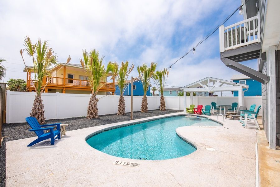 **A signed Property Management Rental Agreement Contract is mandatory upon booking. Also required is a copy of driver's license to receive check in instructions. Contracting guests of Port A Beach House Company must be 25 years of age or older.** Adjust your coordinates to Latitude Adjustment! This 3 bedroom, 3 bathroom, sleeps 10 and is fully equipped with an elevator and private pool! The driveway has ample parking and can fit a boat/trailer or even 8 vehicles! The home is located just minutes from the beach, restaurants, shops and sips! After a long day at the beach come relax by the pool, grill it up and hang out under the gazebo and create some great memories! Add a 6 seater golf cart to your booking for USD175 per day! We are your one stop shop. It's the best way to experience the island life and enjoy fun and easy access to the beach! Beach gear credit included! As a gift to you, this home offers beach gear credit for you to select top-quality beach gear for your vacation stay. You can choose from a range of items including bikes, kayaks, paddleboards, boogie boards, and more. Simply select the gear you want for your vacation at least 48 hours before your scheduled check-in date, and VayK Gear will take care of the rest! Please note, a small delivery fee may apply. CONDO FEATURES -House on stilts, two story, and an elevator -PRIVATE POOL -NOT PET FRIENDLY -Parking for ten standard vehicles -Bedrooms located on the second level -pull out sofa -Kitchen, Dinning, and Living area -Flat-screen TVs -Washer and Dryer in unit -RV Parking with a 50 AMP hook up -Skate park -Play ground -Trail head to Charlie's Pasture BEDROOMS/BATHROOMS (SLEEPS 10) -Master bedroom: King size bed -Second bedroom: King size bed -Third bedroom: Twin over twin bunk-bed and full over full bunk-beds -Queen pull out sofa -Three full bathroom: Walk in shower. Shower / tub combination KITCHEN & DINING -Fully equipped kitchen, with basic essential needs -Dining room table with seating for eight -Breakfast bar with seating for five -Standard coffee maker, and Keurig coffee maker -Blender -Toaster EXTERIOR -Patio with chairs -Balcony with chairs -Outdoor shower -Charcoal grill -Picnic table -Private pool ADDITIONAL INFORMATION -A two-night minimum stay is required. -Check in time is approximate time; housekeeping and maintenance make all attempts to be ready by 4pm but there is no guarantee. -STARTER set for guests to include two trash bags, dish soap and two dish-washing pods, one toilet paper roll per bathroom, one paper towel roll, mini toiletry supplies. Guests SHOULD bring extra amounts of these items as the starter set is for 1 night, and we will not resupply the home. -Construction is always happening somewhere in Port Aransas; we can't guarantee that you won't hear/see construction, building, or community improvement projects and events during your stay. -Cable/WIFI is provided as a convenience; Port A does experience outages from time to time. There are no refunds for outages of cable/WIFI or if city pool is closed for cleaning, repair or maintenance. -Please remember that you are on an island; mosquito's/pests can be plentiful several times per year. Our properties are treated by professional pest control service every month. CLEANING AND INSPECTION -We use disinfecting products that meet or exceed CDC performance standards. -Every property is stocked with bath towels & washcloths for the maximum occupancy of the property along with one hand towel per bathroom. -These complimentary amenities are provided in the property as a convenience until you can go shopping: hand/bath soap, one toilet paper roll per bathroom, one paper towels, two dishwasher pods, two trash bags, and one make-up wipe per bathroom. -We inspect every property to make sure it is up to standard and ready for your family's arrival. THINGS TO BRING -Beach/pool towels -Shampoo & conditioner -Sunscreen -Beach gear, toys, chairs, umbrella -Food, condiments, oils & spices, coffee, etc. ***WiFi is not compatible for guests working remotely during their stay. We do not guarantee a good connection due to spotty internet on the island. Max occupancy is 10 and regulated by City ordinance. STR #258104 Please note: A valid credit card is required prior to arrival in lieu of a security deposit. Port A Beach Company has engaged VacayHome to ensure this listing contains all the information you need and that it is easy for you to book via search engines & online channels. VacayHome is connected directly to the property management system used by Port A Beach Company which ensures that availability & rates are up-to-date & accurate. When you book, VacayHome processes payment on behalf of Port A Beach Company and a charge will appear on your statement as "VacayHome". VacayHome will send you a confirmation e-mail that contains all the information you need to prepare for your vacation including arrival instructions. VacayHome has a 24 x 7 team to assist you with any questions or concerns you may have prior to arrival. To access VacayHome, obtain the customer support telephone number or read FAQs, please click on the links at the bottom of this page.