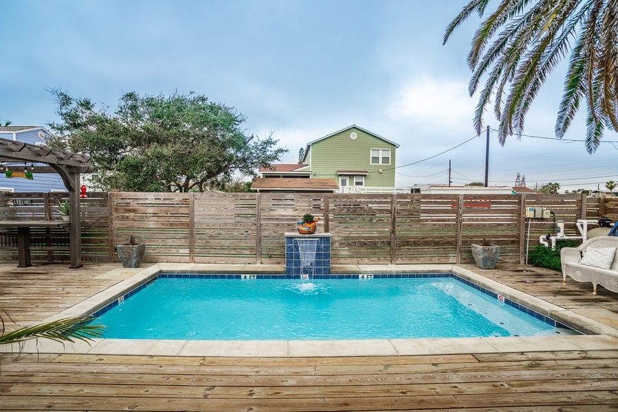 **A signed Property Management Rental Agreement Contract is mandatory upon booking. Also required is a copy of driver's license to receive check in instructions. Contracting guests of Port A Beach House Company must be 25 years of age or older.** Welcome to the Oleander House! This one of a kind ranch style home was built in 1957 and was featured in the Garden's Club first home tour. It is a 4 bedroom, 2 bathroom beach home that is perfect for a family & friend vacation! The remodeling preserved many of the home's original workmanship, while updating to a COASTAL CUTIE. You will enjoy soaking up the Texas sun in the large PRIVATE POOL! This home does feature a fenced in yard for your furry little friends! Don't forget to add a 6 seater golf cart to your booking! We are your one stop shop. It's the perfect way to experience island life and enjoy fun, easy beach access! Beach gear credit included! As a gift to you, this home offers beach gear credit for you to select top-quality beach gear for your vacation stay. You can choose from a range of items including bikes, kayaks, paddle boards, boogie boards, and more. Simply select the gear you want for your vacation at least 48 hours before your scheduled check-in date, and VayK Gear will take care of the rest! Please note, a small delivery fee may apply. Winter Texan friendly! Contact our office for rates! CONDO FEATURES -House, one story, no elevator -PET FRIENDLY for an additional USD 125 per pet. MAX 2 -Parking for two standard vehicles -Bedrooms located near the rear of the home -Kitchen, Dinning, and Living area -Flat-screen TVs -Washer and Dryer in unit -Two kayak -Life jackets -Hair Dryer -Iron / Iron board -Vacuum -Box fan BEDROOMS/BATHROOMS (SLEEPS 12) -First bedroom: Queen size bed -Second bedroom: Queen size bed -Third bedroom: Queen size bed, Twin over twin bunk-bed -Fourth bedroom: Queen size bed, twin size bed -Two full bathroom: Walk in shower. KITCHEN & DINING -Fully equipped kitchen, with basic essential needs -Dining room table with seating for six -Breakfast bar with seating for three -Standard coffee maker / Keurig coffee maker -Toaster -Blender -Mixer EXTERIOR -Patio with chairs -Private pool -Outdoor shower -Propane grill ADDITIONAL INFORMATION -A two-night minimum stay is required. -Check in time is approximate time; housekeeping and maintenance make all attempts to be ready by 4pm but there is no guarantee. -STARTER set for guests to include two trash bags, dish soap and two dish-washing pods, one toilet paper roll per bathroom, one paper towel roll, mini toiletry supplies. Guests SHOULD bring extra amounts of these items as the starter set is for 1 night, and we will not resupply the home. -Construction is always happening somewhere in Port Aransas; we can't guarantee that you won't hear/see construction, building, or community improvement projects and events during your stay. -Cable/WIFI is provided as a convenience; Port A does experience outages from time to time. There are no refunds for outages of cable/WIFI or if city pool is closed for cleaning, repair or maintenance. -Please remember that you are on an island; mosquitoes/pests can be plentiful several times per year. Our properties are treated by professional pest control service every month. CLEANING AND INSPECTION -We use disinfecting products that meet or exceed CDC performance standards. -Every property is stocked with bath towels & washcloths for the maximum occupancy of the property along with one hand towel per bathroom. -These complimentary amenities are provided in the property as a convenience until you can go shopping: hand/bath soap, one toilet paper roll per bathroom, one paper towels, two dishwasher pods, two trash bags, and one make-up wipe per bathroom. -We inspect every property to make sure it is up to standard and ready for your family's arrival. THINGS TO BRING -Beach/pool towels -Shampoo & conditioner -Sunscreen -Beach gear, toys, chairs, umbrella -Food, condiments, oils & spices, coffee, etc. ***WiFi is not compatible for guests working remotely during their stay. We do not guarantee a good connection due to spotty internet on the island. Max occupancy is 12 and regulated by City ordinance. STR #293053 Please note: A valid credit card is required prior to arrival in lieu of a security deposit. Port A Beach Company has engaged VacayHome to ensure this listing contains all the information you need and that it is easy for you to book via search engines & online channels. VacayHome is connected directly to the property management system used by Port A Beach Company which ensures that availability & rates are up-to-date & accurate. When you book, VacayHome processes payment on behalf of Port A Beach Company and a charge will appear on your statement as "VacayHome". VacayHome will send you a confirmation e-mail that contains all the information you need to prepare for your vacation including arrival instructions. VacayHome has a 24 x 7 team to assist you with any questions or concerns you may have prior to arrival. To access VacayHome, obtain the customer support telephone number or read FAQs, please click on the links at the bottom of this page.