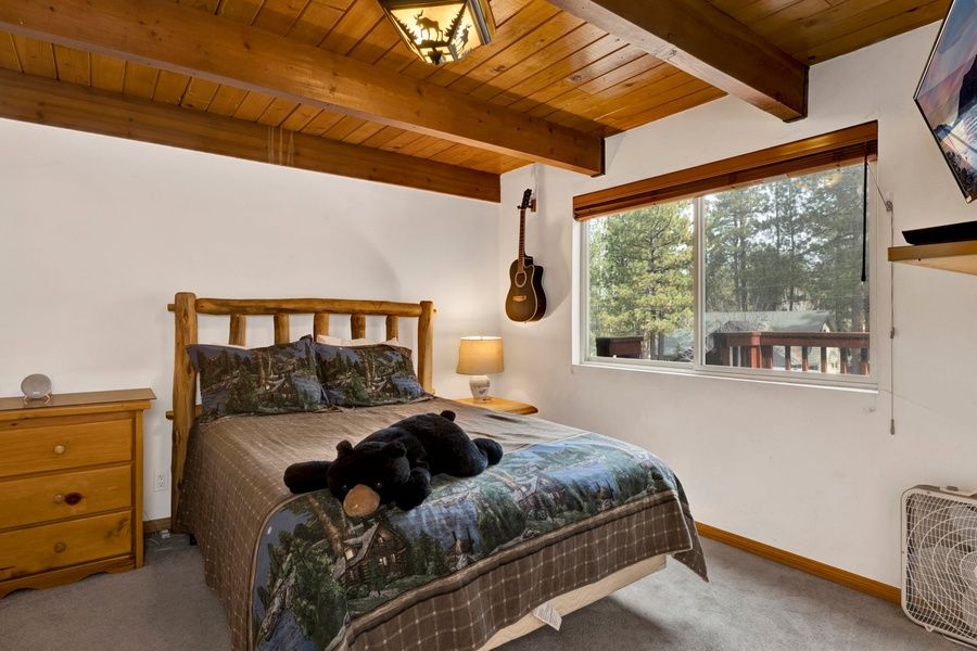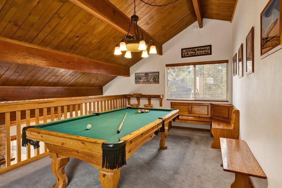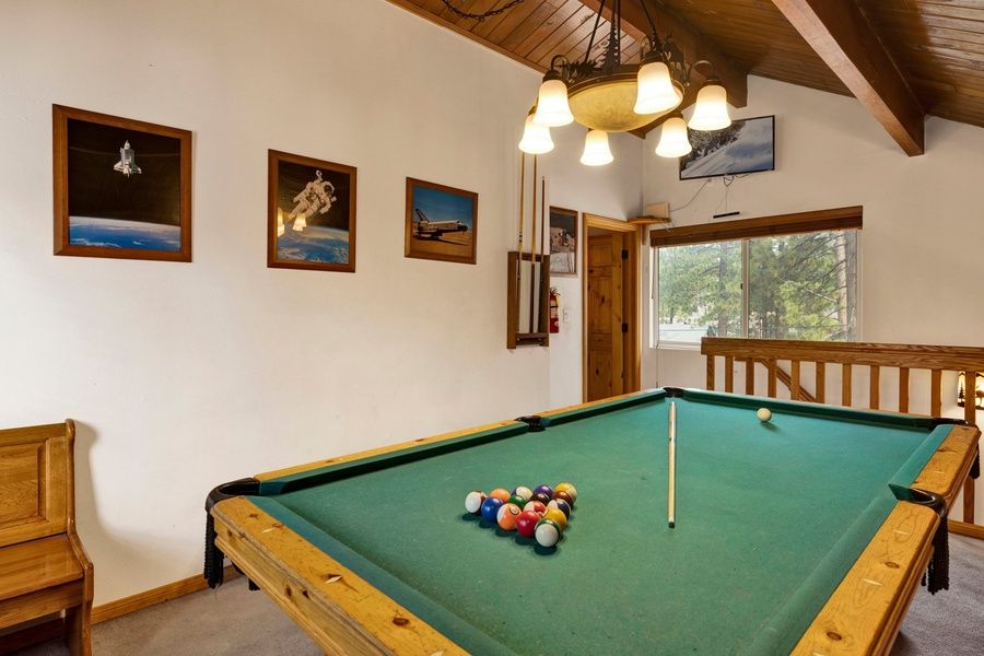 Enjoy a game of foosball or pool right here at the cabin as your group indulges in the on-site amenities offered for your group. Enjoy easy access to three spacious sleeping areas and two beautiful bathrooms, all are made up for your group with mounted flat screen Streaming TVs, warm linens, blankets, pillows, and fresh shower towels for your vacation when you arrive. Head out to the great outdoors where you will find a pet friendly fenced yard, amazing sun deck with outdoor patio furnishings and a propane BBQ, plus your own private hot tub under the stars. You will love relaxing and unwinding out here after a fun day of adventures out on the mountain as you soak in the hot tub. Take a short stroll to the ski lifts at Snow Summit Resort or hop in the car and you are under ten minutes to all local activities- this truly is an unbeatable vacation cabin no matter the season you choose to visit.
