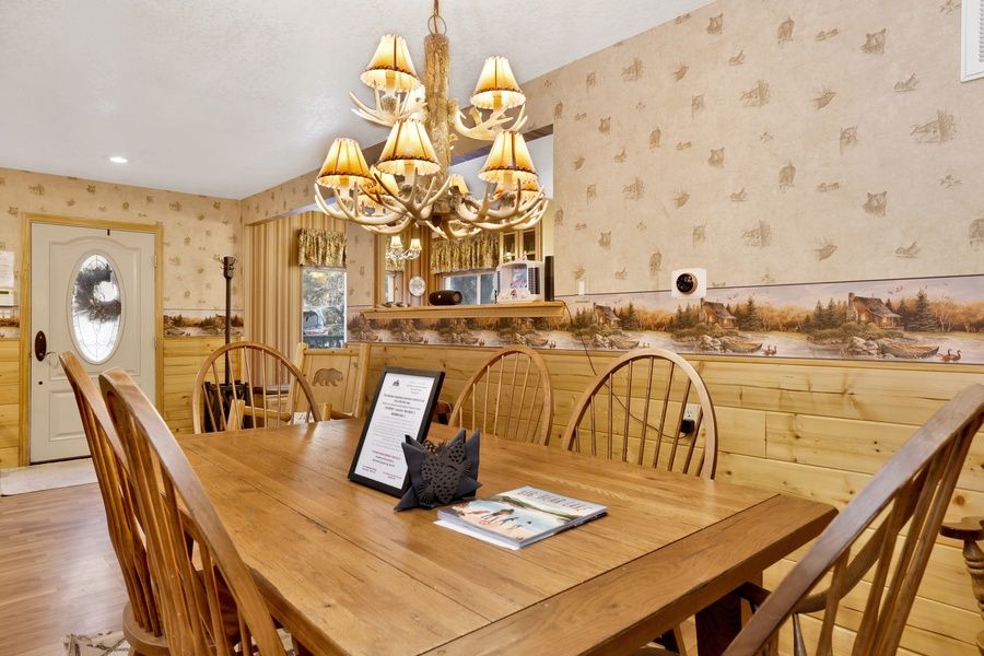 This spacious single level chalet offers cozy mountain furnishings and décor to enhance your stay along with modern touches and bonus amenities that will make you feel right at home. Snuggle up on the couch and warm your toes in front of the toasty wood burning fireplace as you pop on a movie on the flat screen Streaming TV as you watch the snow falling outside with complimentary hi speed WIFI internet available. (Guests must have their own accounts to enjoy Streaming Services.) The chef of your group will love the equipped kitchen and great dining essentials to ensure your group can dine comfortably together or you can entertain a dinner party or host your next family holiday together. Being a single level you will have quick and easy access to your three bedrooms and the hallway bathroom- each room is made up for your visit when you arrive. Head outside to enjoy a spacious sun deck and your own private hot tub under the stars- you will love soaking your muscles here after a fun day out on the mountain. Centrally located within minutes to local activities you truly have the best of Big Bear right at your fingertips from here. Big Bear Happy Place has it all- come experience your new home away from home in the mountains today!