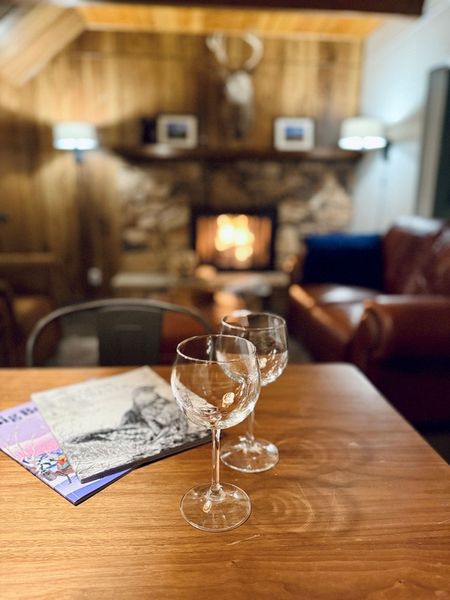 Enter on the lower level of your chalet where you are greeted with knotty pine beamed ceilings and mountain themed décor within a cozy and warm open floor plan- perfect for visiting together on the sitting couch as you warm your toes in front of the toasty wood burning fireplace and watch the snow falling thru the open windows and tree top views. The log dining table pairs with the breakfast bar stools to ensure there is plenty of comfortable seating for your party while the cute kitchen is equipped with all that you need for your home cooked meals together including cookware, utensils, and general appliances. Enjoy two sleeping quarters and a spacious bathroom on each level of your sprawling chalet keeping you perfectly spaced out yet still connected while vacationing- each room is made up for your group with warm linens, blankets, pillows, and fresh shower towels for your visit when you arrive.