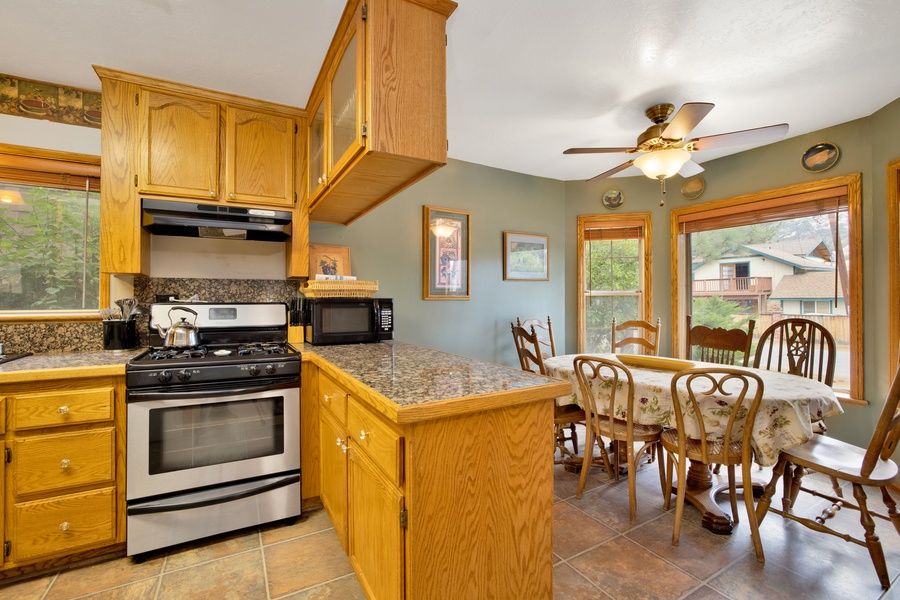 Snuggle up on the cozy couch together as you warm your toes in front of the toasty wood burning fireplace and enjoy a movie on the flat screen Streaming TV with complimentary hi speed WIFI internet provided to ensure you stay connected while vacationing. Around the corner here a cute dining room area and equipped kitchen offer the chef of your group all that you will need to whip up home cooked meals and slope side snacks including general appliances and cookware for your meals. A separate laundry room with a washer and dryer is on hand for those wet snow clothes and extended visits to the mountains.