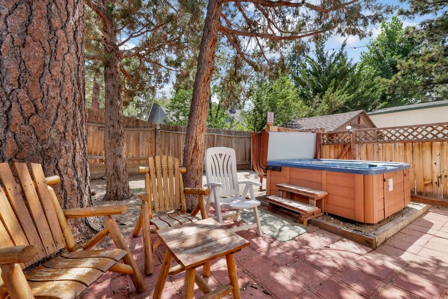 Being a single level cabin you will have quick and easy access to your full bathroom and both bedrooms, all are made up with linens and fresh towels while a convenient sliding glass door from the first room offers you direct back yard and patio access to the hot tub. Venture outside where your group can enjoy red wood sun decks and a serene fenced backyard, complete with outdoor patio furnishings and privacy fencing, and your own private hot tub under the stars, you will love spending your evenings unwinding here or sipping your first cup of coffee in the morning before heading out to the trails. Montana Cabin has everything you are looking for in your next home away from home- pairing a prime relaxing location with needed essentials and bonus amenities you will absolutely love your stay here! Book today!