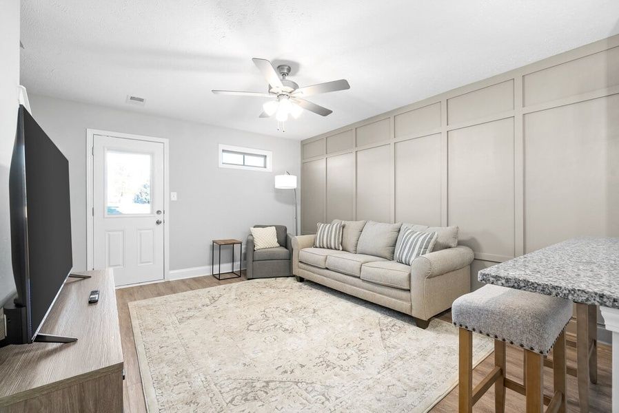 Enjoy our modern 1400sf, two-story condo with a private entrance. We have 2 designated parking spots in the main parking lot which leads directly to your front door. Our private, 3-bedroom, 3-bathroom space comes equipped with a full kitchen to make home-cooked meals for friends and loved ones. Stream your favorite shows or movies on our large screen TVs in the living room and bedrooms. Stay organized and avoid the cost of a laundromat by using our in-unit washer/dryer.