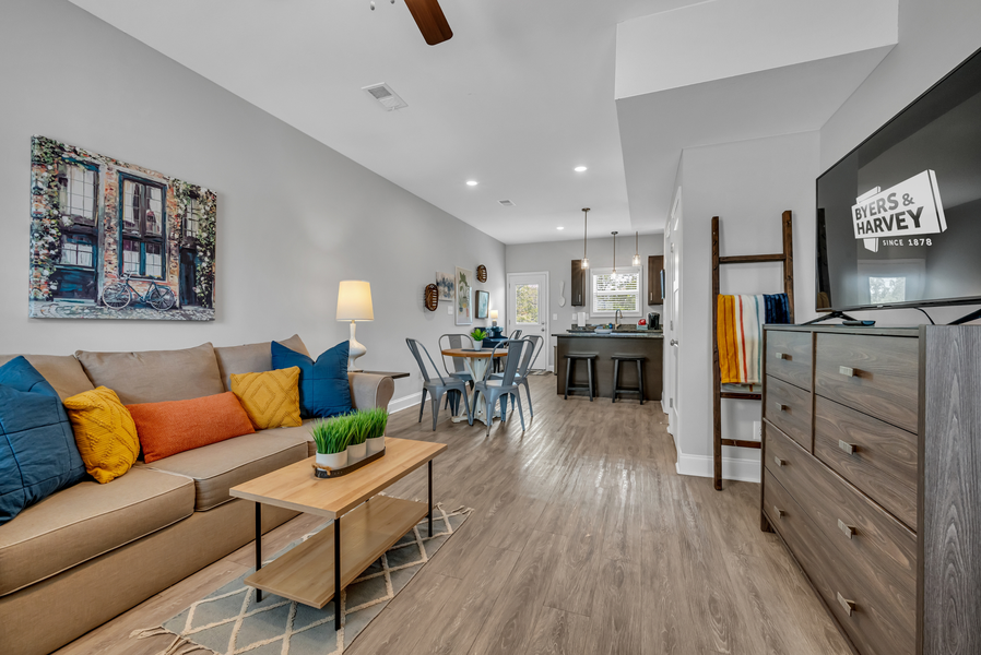 Enjoy our modern 1100sf, two-story apartment with a private entrance. We're located within 10 minutes of the city's most popular bars, restaurants, and Austin Peay State University. We have 2 designated parking spots in the main parking lot which leads directly to your front door.