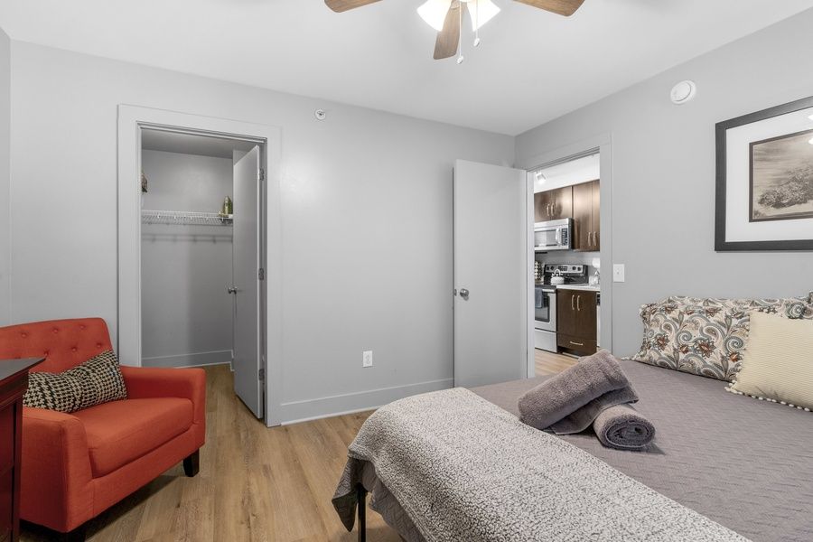 This fully-furnished 1-bedroom- 1-bathroom unit is located on the second floor for easy access to the main public walkway. The kitchen offers a full-size stove/oven- overhead microwave and full-size refrigerator/freezer. The main living - dining area provides plenty of space to enjoy a meal- relax on the couch- and stream your favorite shows! The bathroom is stocked with hotel-like amenities and emergency toiletries in case you forgot anything at home as well!