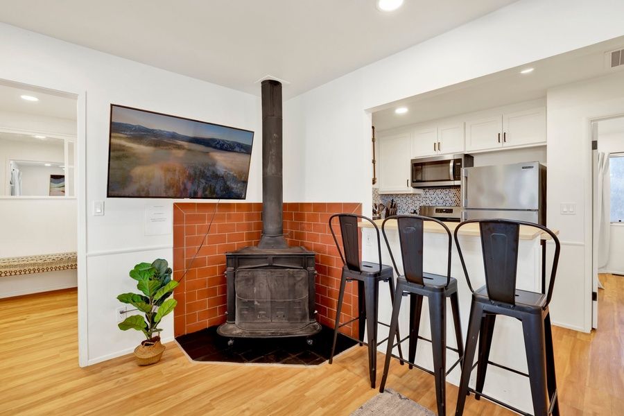 Step inside to discover a haven of fresh furnishings and inviting ambiance. With a fully equipped kitchen and ample space for your group to unwind, it's the perfect setting for creating cherished memories. Snuggle around the fire in the cozy living room as you pop on a movie on the flat screen Streaming TV. Embrace the tranquility of nature while indulging in the comforts of home in our idyllic mountain retreat.