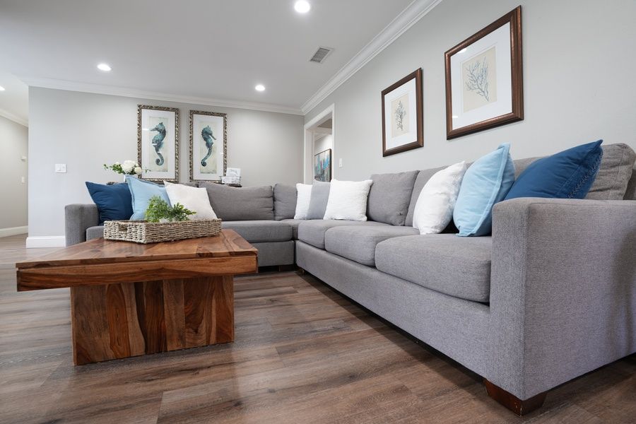 Visit our beautiful pool home, perfectly set up for two families. Our home is designer decorated with upgraded tiled bathrooms and wood floors. There are two cal-king master bedrooms with ensuites. The remaining rooms are a queen bed and a children's room with full over full bunk beds. These rooms share a hallway bathroom. All the rooms have 46+ TVs. Spacious living room with a queen pull-out. The open-concept kitchen and dining room with plenty of seating for all.